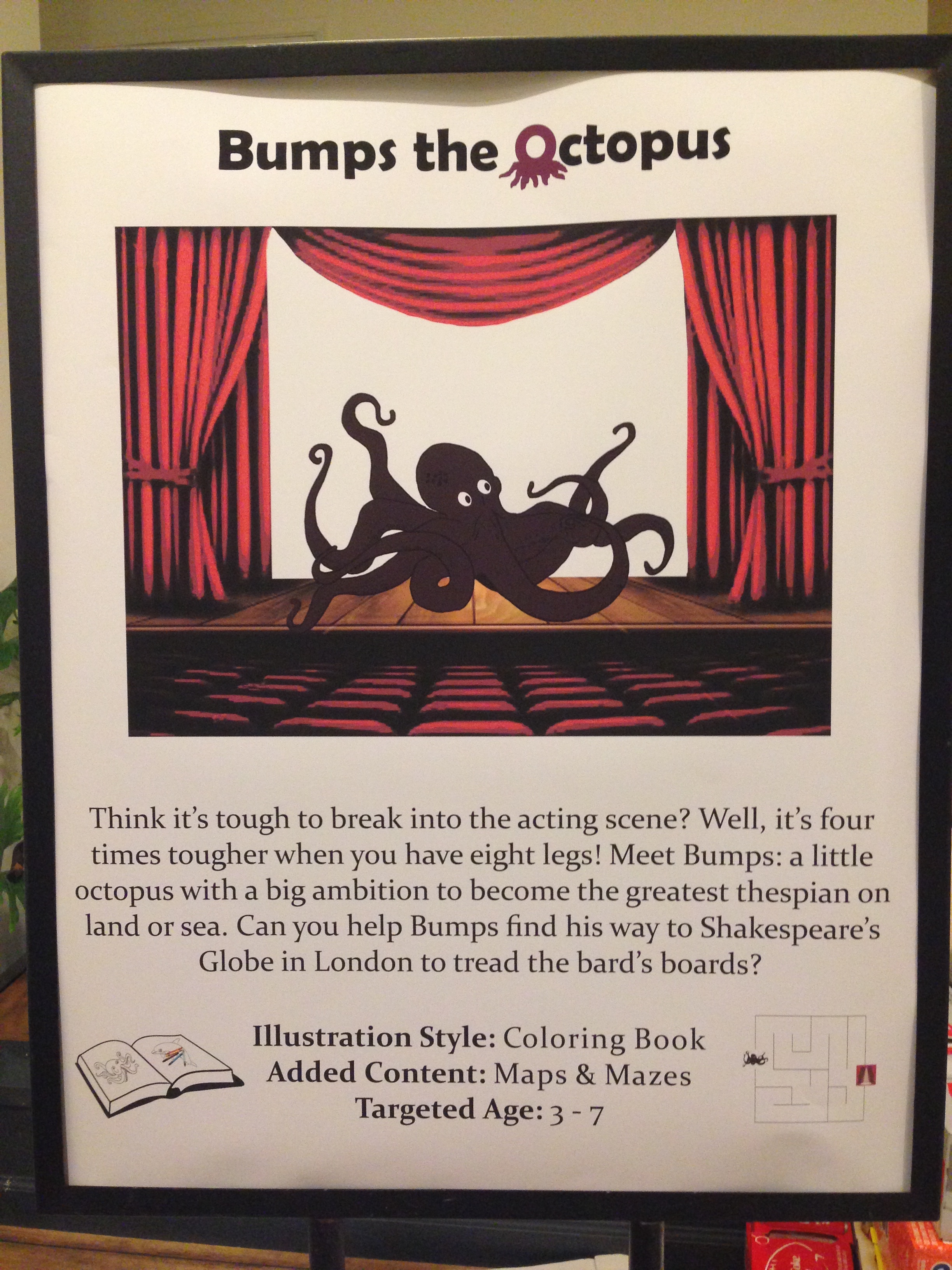 Bryan’s story, Bravo Bumps will be a coloring book full of mazes and activities for children. It’s a story of a small octopus named Bumps who makes his way from the San Francisco Bay to the Globe Theater in London where he pursues his dream of becoming the greatest actor on land & sea.